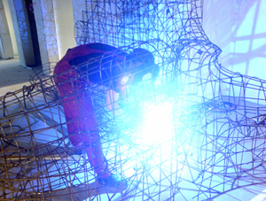 Bei der Formherstellung mit Metallgitter werden das räumliche Vorstellungsvermögen, konstruktiv abstraktes Denken und die handwerkliche Umsetzung eines Modells im vergrößerten Maßstab geübt! Zum Aufbau von großen und kleinen Hohlkörpern, als verlorene oder entfernbare Schalung bei Gießverfahren, zur stabilen Herstellung filigraner, dünnwandiger Formen, zum Bau eines ganzen Hauses, wie auch eines kleinen Licht-Objekts ist sie in verschiedenen Variationen bestens geeignet. Wir bauen in diesem Seminar mit dünnem Rundstahl, Schweißgerät, Drahtgeflecht und Flexmetallgitterdreidimensionale, auch große transportable Gitterformen, die später verputzt werden können. Das Erfassen der Form und das Umdenken in ein anderes Material und in einen anderen Maßstab erfordert Formgefühl, intensive Konzentration und Liebe zum Objekt.