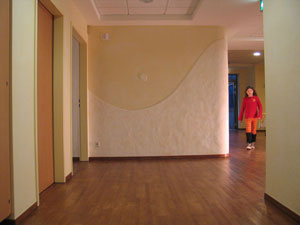 In der Gemeinde Eitorf zwischen Bergischem Land und Westerwald ergab sich die Möglichkeit einer besonderen Neugestaltung der Entbindungsstation im dortigen St. Franziskus- Krankenhaus. KARAMULIS wurde eingeladen, die für die atmosphärische Planung der Räume verantwortlich zu zeichnen. Nach den Vorschlägen von Herbert Antweiler wurden die neuen Trennwände nach gestalterisch-funktionalen Gesichtspunkten gesetzt, zum Teil auch auf einem geschwungenen Grundriss! Seine Licht-Quellen, beheizten Sitzobjekte und Farbgestaltungen sorgen für eine angenehme Stimmung.