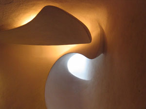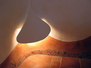 Mit organischen Formen und besonderen Lichtobjekten wurde eine Atmosphäre geschaffen, die das ganzheitliche Betreuungskonzept unterstützt. Gebärende, Hebammen und ÄrztInnen fühlen sich hier wohl. Die Frauenärztin, die Hebammen und der Gestalter sind davon überzeugt, dass eine angenehme Raumatmosphäre die körperliche Entspannung und damit auch die Voraussetzungen für eine sanfte Geburt fördert.