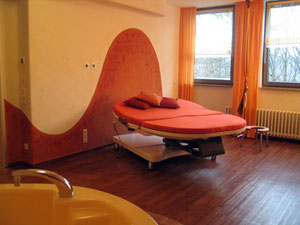 In der Gemeinde Eitorf zwischen Bergischem Land und Westerwald ergab sich die Möglichkeit einer besonderen Neugestaltung der Entbindungsstation im dortigen St. Franziskus- Krankenhaus. KARAMULIS wurde eingeladen, die für die atmosphärische Planung der Räume verantwortlich zu zeichnen. Nach den Vorschlägen von Herbert Antweiler wurden die neuen Trennwände nach gestalterisch-funktionalen Gesichtspunkten gesetzt, zum Teil auch auf einem geschwungenen Grundriss! Seine Licht-Quellen, beheizten Sitzobjekte und Farbgestaltungen sorgen für eine angenehme Stimmung.